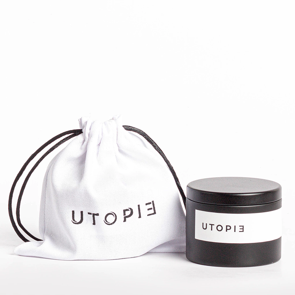 Em algodão com cordão de seda preta, o saquinho 12x12 cm guarda as velas de 90g com elegância — um toque especial para quem presenteia com intenção.